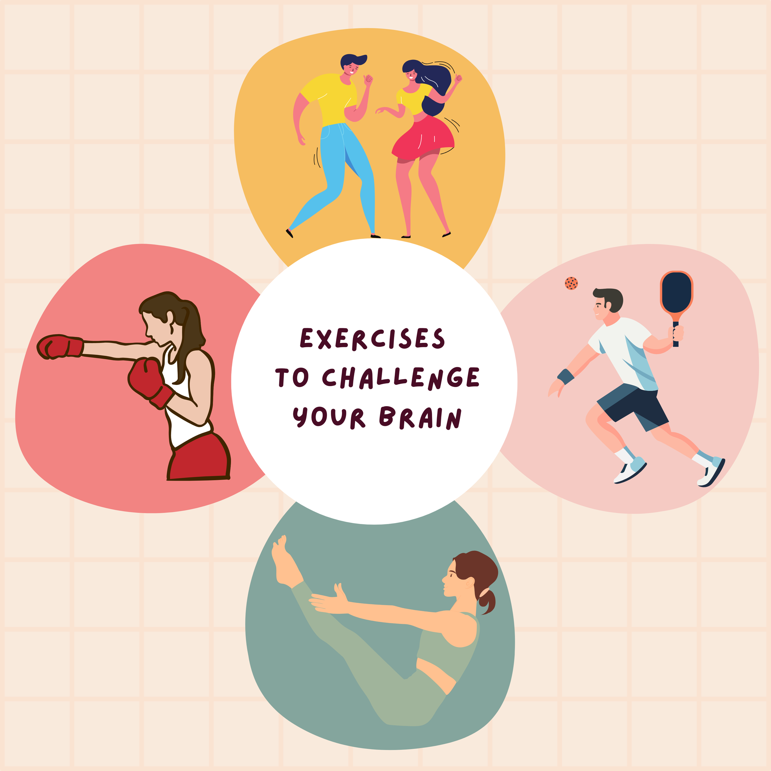 This can include walking, swimming, dancing, hiking — or any moderate movement that gets your heart rate up and your body out of stillness. For bonus brain benefit, try adding coordination activities like pickleball, tennis or choreographed dance classes.